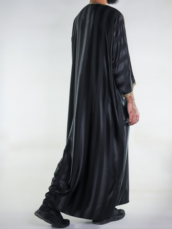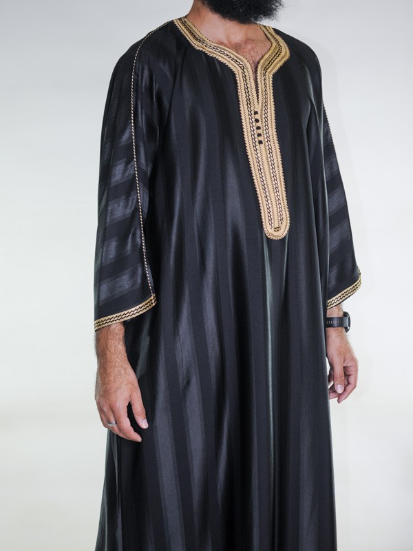 Gandoura marokkanische Djellaba Schwarz / Goldene Stickerei
