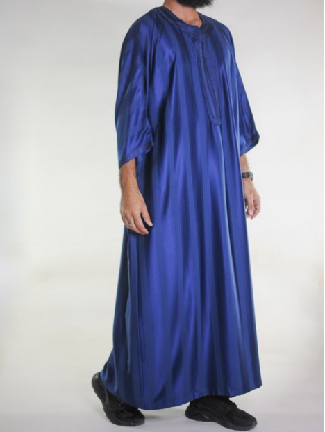 Gandoura djellaba marocaine Bleu marine / Broderie ton sur ton