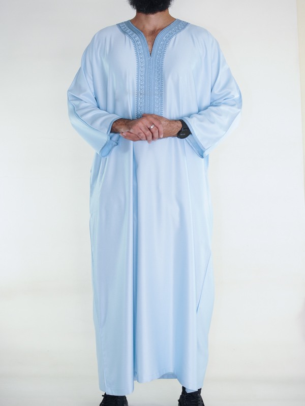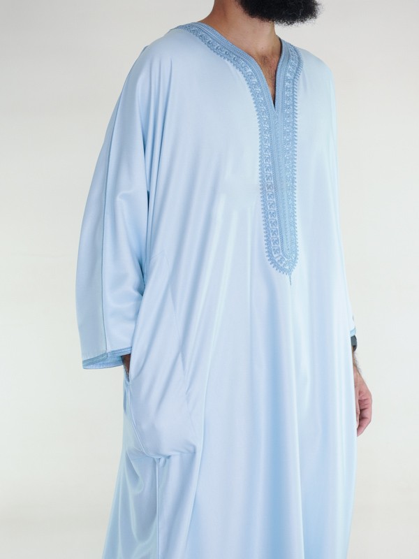 Gandoura marocaine Amir - bleu cyan