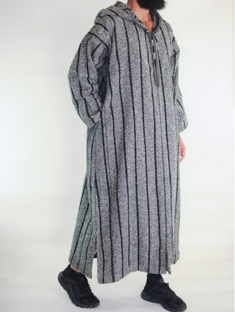 Djellaba marocaine Ouazzania hiver - Gris foncé rayé