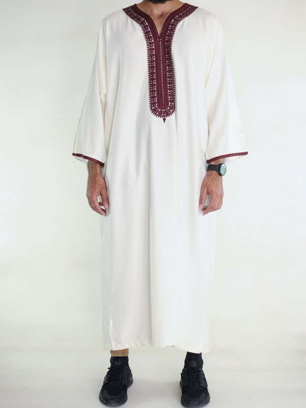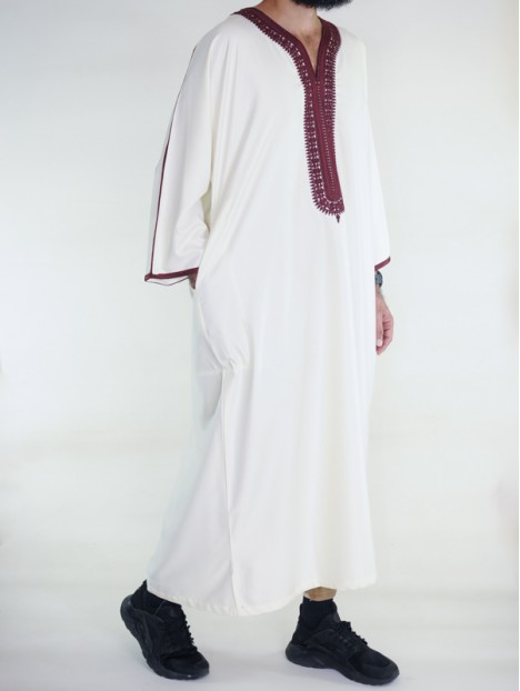 Gandoura marocaine Amir - blanc cassé / bordeaux