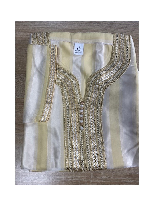 Gandoura djubba moroccan Mustard / Off White / Golden Sfiffa