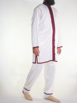 Men's 2 Piece Jabador - Off White with Garnet Embroidery