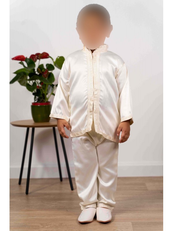 Jabador child 2 pieces - Off-white child circumcision outfit with cream embroidery
