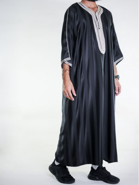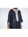 Gandoura marocaine Jawhara - Noir / Broderie Blanche